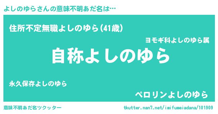 | 肩書あだ名 | 『よしのゆら総統』『よしのゆら教官』 |
