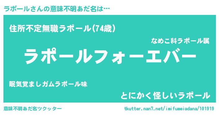 | 恥ずかしいあだ名 | 『ラポっちょ』『ラポリンリン』 |
