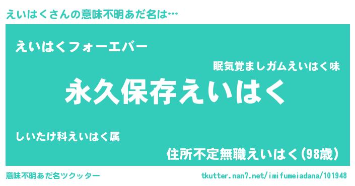 | 男性向けラノベタイトル風あだ名 | 『えいはくという概念が存在しない退屈な世界 』 |