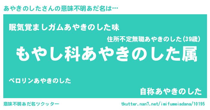 | ヒーロー風カッコイイあだ名 | 『慈愛の使者あやきのした』 |