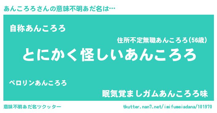 | 男性向けラノベタイトル風あだ名 | 『ダンジョンにあんころろを求めるのは間違っているだろうか』 |