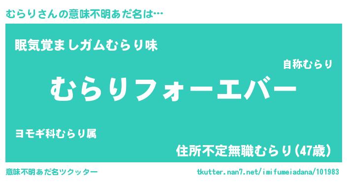 | ポケモン風あだ名 | 『ムラリダネ』『ムックウザ』 |