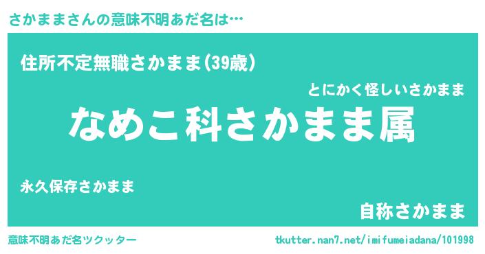 | ヒーロー風カッコイイあだ名 | 『仮面サカダー』『ウルトラ戦士サカママ』 |