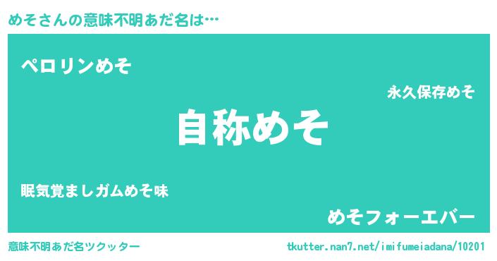 | 男性向けラノベタイトル風あだ名 | 『めそに滅ぼされるだけの簡単なお仕事です』 |