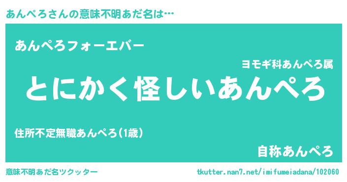 | 胡散臭い通販商品みたいなあだ名 | 『信頼と実績のペンダント…その名も「あんぺろ」』 |