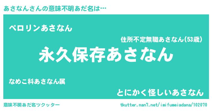 | ヘコむあだ名 | 『あさなん(小並感)』『あさもー』 |