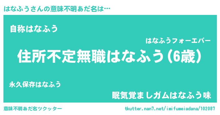 | 男性向けラノベタイトル風あだ名 | 『この素晴らしい世界にはなふうを!』 |