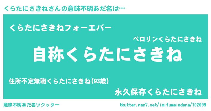 | 女子向けラノベタイトル風あだ名 | 『くらたにさきねなんてお断りですっ。』 |