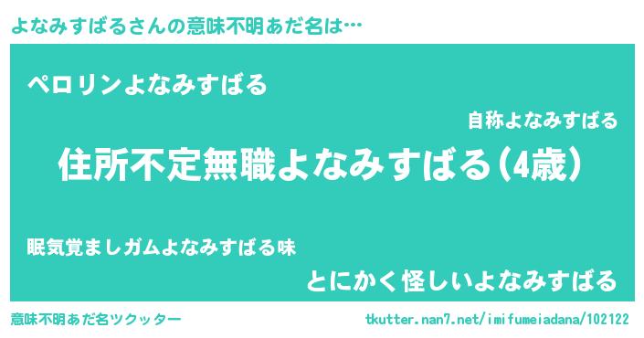 | ヒーロー風カッコイイあだ名 | 『仮面ヨナダー』『スーパーヨナミスバル』 |