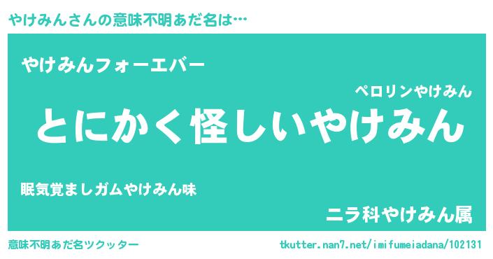 | ポケモン風あだ名 | 『ヒヤケミン』『ヤケミダネ』 |