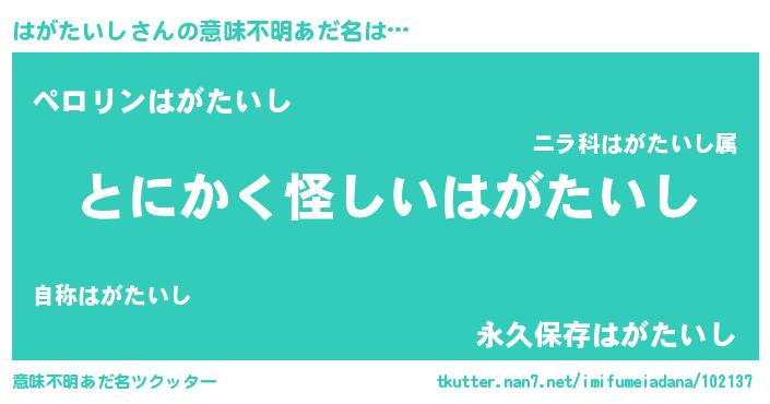 | 女子向けラノベタイトル風あだ名 | 『はがたいし様がみてる』 |