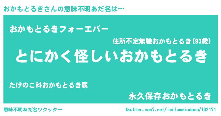 | 男性向けラノベタイトル風あだ名 | 『ダンジョンにおかもとるきを求めるのは間違っているだろうか』 |