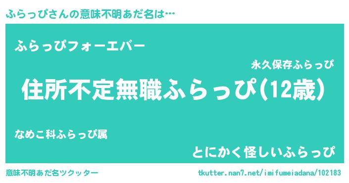 | ヒーロー風カッコイイあだ名 | 『仮面フラダー』『ウルトラふらっぴマン』 |