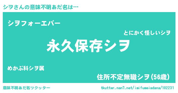 | 欧米人風あだ名 | 『シヲ・ステッグマイヤー』 |