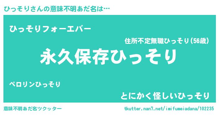 | ヒーロー風カッコイイあだ名 | 『ネオヒッソリ』『ウルトラひっそりマン』 |