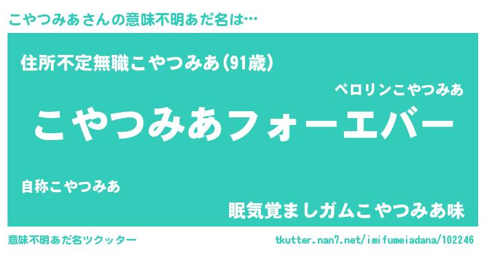 | 欧米人風あだ名 | 『こやつみあクリステル』 |