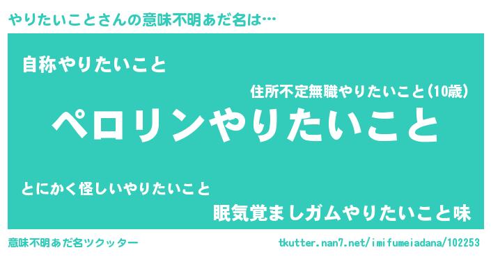 | ヒーロー風カッコイイあだ名 | 『スーパーヤリタイコト』『仮面ヤリダー』 |