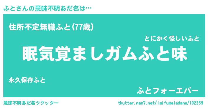 | 料理風あだ名 | 『ふとのトマト煮』『栗とふとのマフィン』 |