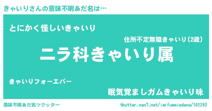 | 欧米人風あだ名 | 『トリンドルきゃいり』 |