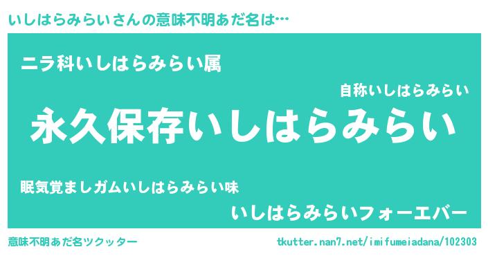 | ヘコむあだ名 | 『いしはらみらい(笑)』『豆乳』 |