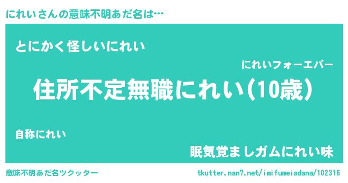| ヘコむあだ名 | 『にれを』『なまこ酢』『にれにゅー』 |