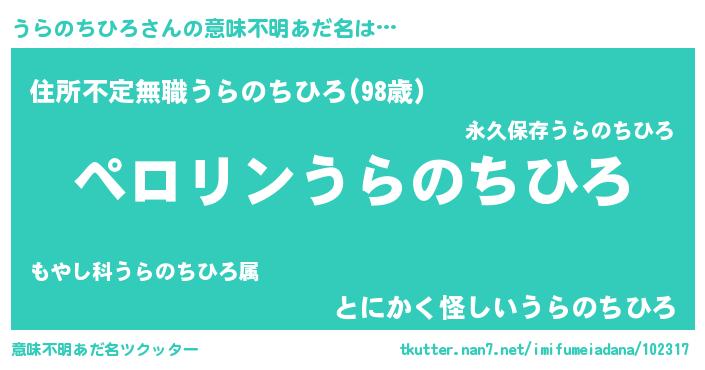 | ヘコむあだ名 | 『うらもー』『うらぷりん』『つくし』 |