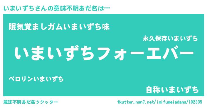 | 男性向けラノベタイトル風あだ名 | 『いまいずちに滅ぼされるだけの簡単なお仕事です』 |
