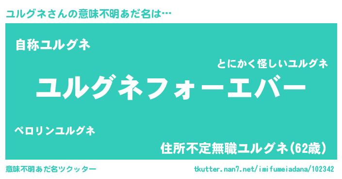 | 女子向けラノベタイトル風あだ名 | 『ユルグネの雑貨屋さん』『闇のユルグネ』 |