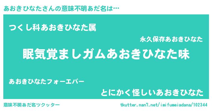 | 女子向けラノベタイトル風あだ名 | 『あおきひなた恋絵巻』 |