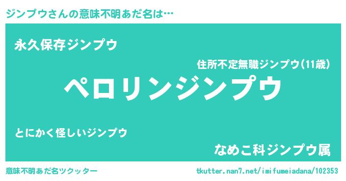 | ヘコむあだ名 | 『ジンにゅー』『ジンプウ(小並感)』 |