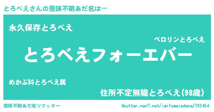 | 欧米人風あだ名 | 『とろべえ・ステッグマイヤー』 |
