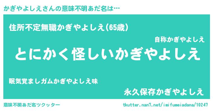 | 女子向けラノベタイトル風あだ名 | 『かぎやよしえは平凡を望む』 |