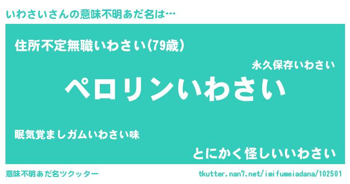 | 胡散臭い通販商品みたいなあだ名 | 『必ず成功するブレスレット…その名も「いわさい」』 |