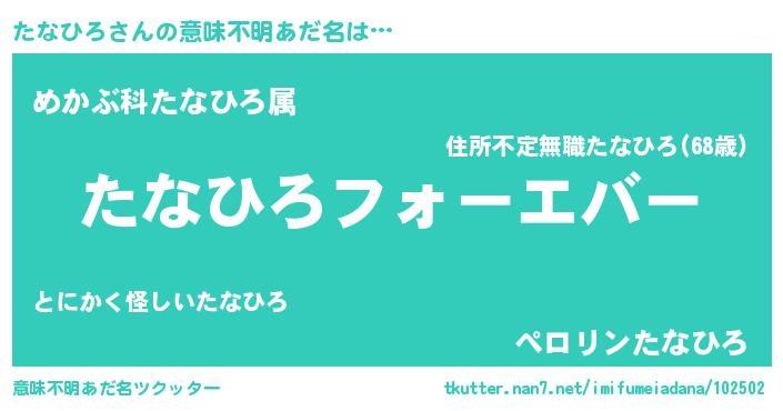 | ヒーロー風カッコイイあだ名 | 『ウルトラたなひろマン』『仮面タナダー』 |