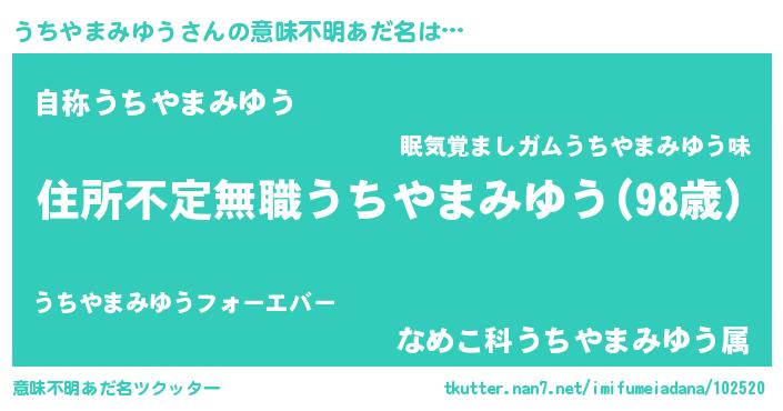 ヘコむあだ名 | 『なまこ酢』『うちやまみゆう(震え声)』 |