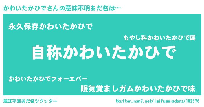 | 男性向けラノベタイトル風あだ名 | 『Re:かわいたかひでから始める異世界生活』 |