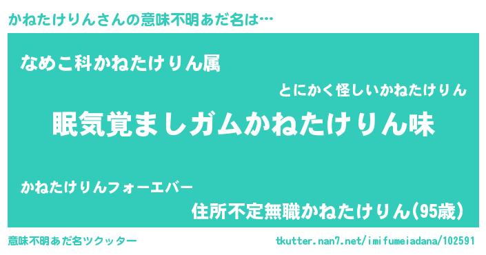 | 女子向けラノベタイトル風あだ名 | 『かねたけりん恋絵巻』 |