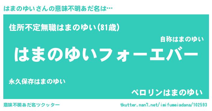 | ファンタジー風あだ名 | 『エターナルハマノユイー』『ハマフェル』 |