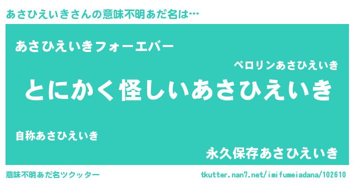 | 女子向けラノベタイトル風あだ名 | 『あさひえいき様がみてる』 |