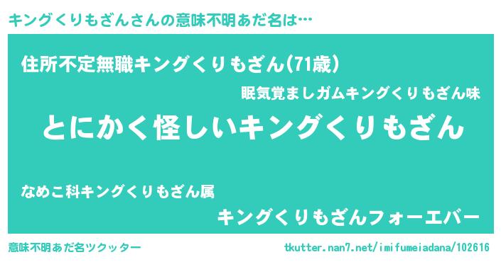 | 男性向けラノベタイトル風あだ名 | 『キングくりもざんの嫁は女の子じゃないと思った?』 |