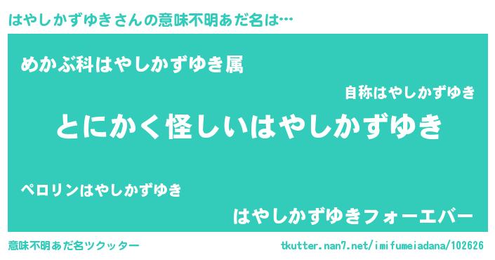 | ポケモン風あだ名 | 『ヒハヤシカズユキ』『ハヤゴンZ』 |
