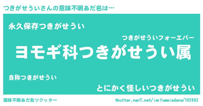 | 男性向けラノベタイトル風あだ名 | 『つきがせうい~年齢イコール彼女いない歴の魔法使い~』 |
