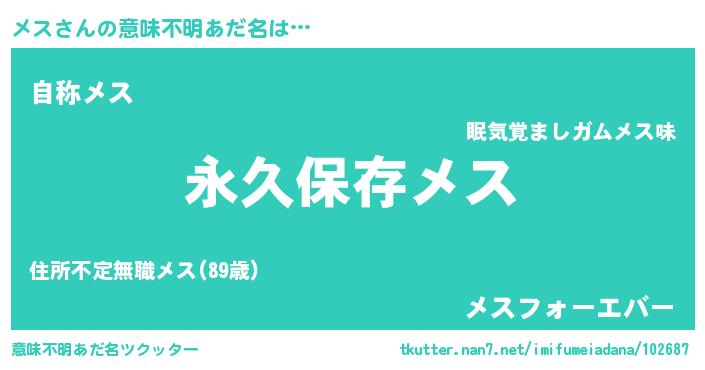 | 胡散臭い通販商品みたいなあだ名 | 『来世でも幸せになれる水素水…その名も「メス」』 |