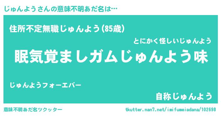 | ヘコむあだ名 | 『じゅっ子』『レバニラ』『じゅもー』 |