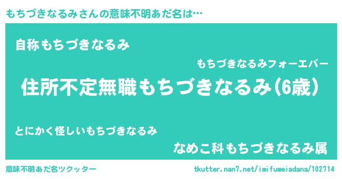 | 男性向けラノベタイトル風あだ名 | 『この素晴らしい世界にもちづきなるみを!』 |