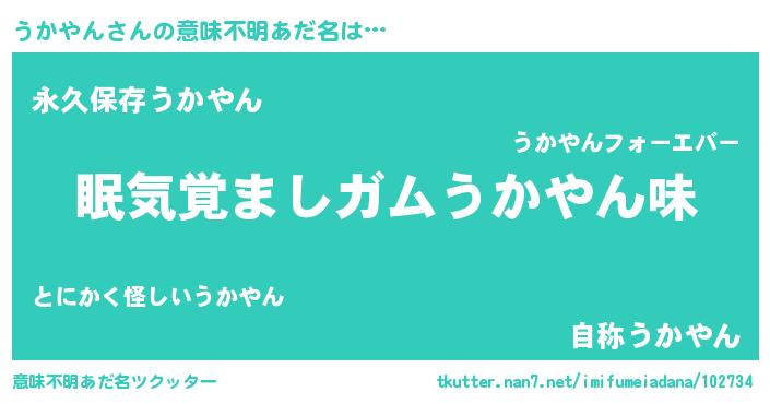| ヒーロー風カッコイイあだ名 | 『友情の使者うかやん』『ネオウカヤン』 |