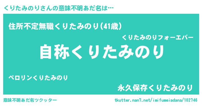 | 男性向けラノベタイトル風あだ名 | 『Re:くりたみのりから始める異世界生活』 |