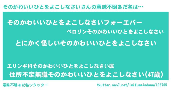 | ポケモン風あだ名 | 『ヒソノカワイイヒトヲヨコシナサイ』 |