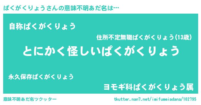 | 男性向けラノベタイトル風あだ名 | 『ダンジョンにぱくがくりょうを求めるのは間違っているだろうか』 |