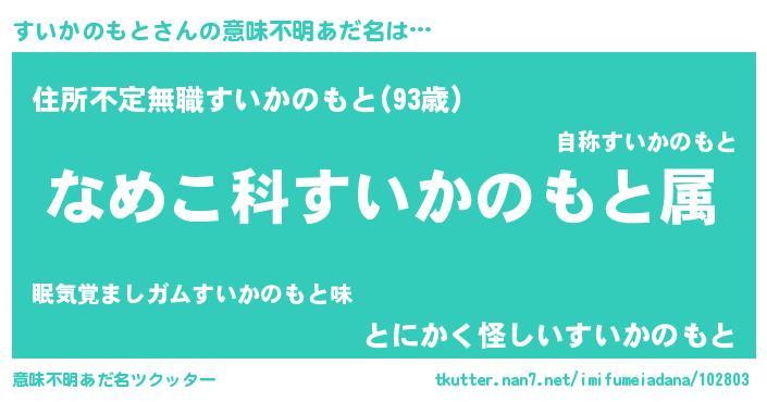 | 胡散臭い通販商品みたいなあだ名 | 『世界中を虜にした世界で10本だけ現存している希少なブランデー…その名も「すいかのもと」』 |